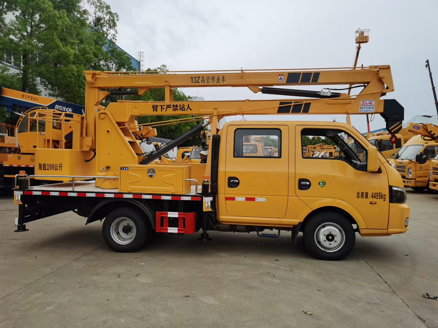 二、上装配置:整车采用 CAN 总线系统,并配备无线遥控器,360°可旋转作业平台 ,H型支腿,横向跨距更宽,稳定性更强。转台和吊篮设有启动和熄火开关,配置应急泵。作业高度13米。