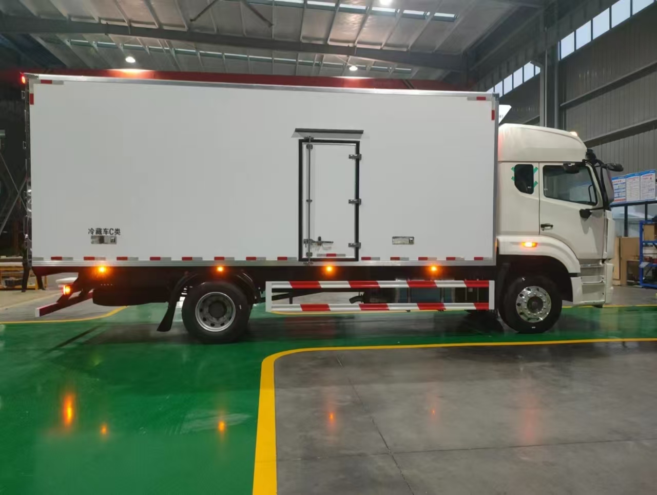 二、厢体配置:采用我公司真空吸附、液压吸附、断热桥技术,大型恒温热压,无缝合成,一次成型工艺制造而成,保温性能达到规定标准。厢体内部尺寸:6830*2420*2520(mm),容积为42立方。厢体内外采用新款纳米玻璃钢板(不吸光、隔热性好、硬度强、抗氧化),中间保温层为8公分厚保温板,砸不乱底板,LED照明灯及示宽灯,高密闭性门板隔温套件,全密封锁温压条,高韧性不锈钢锁件。