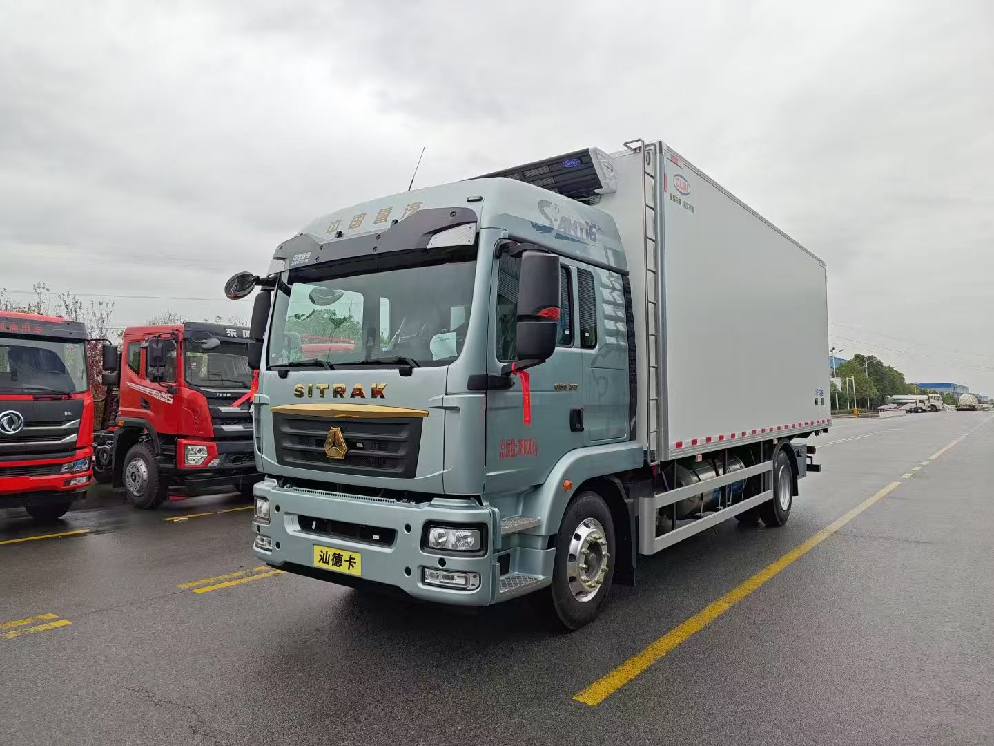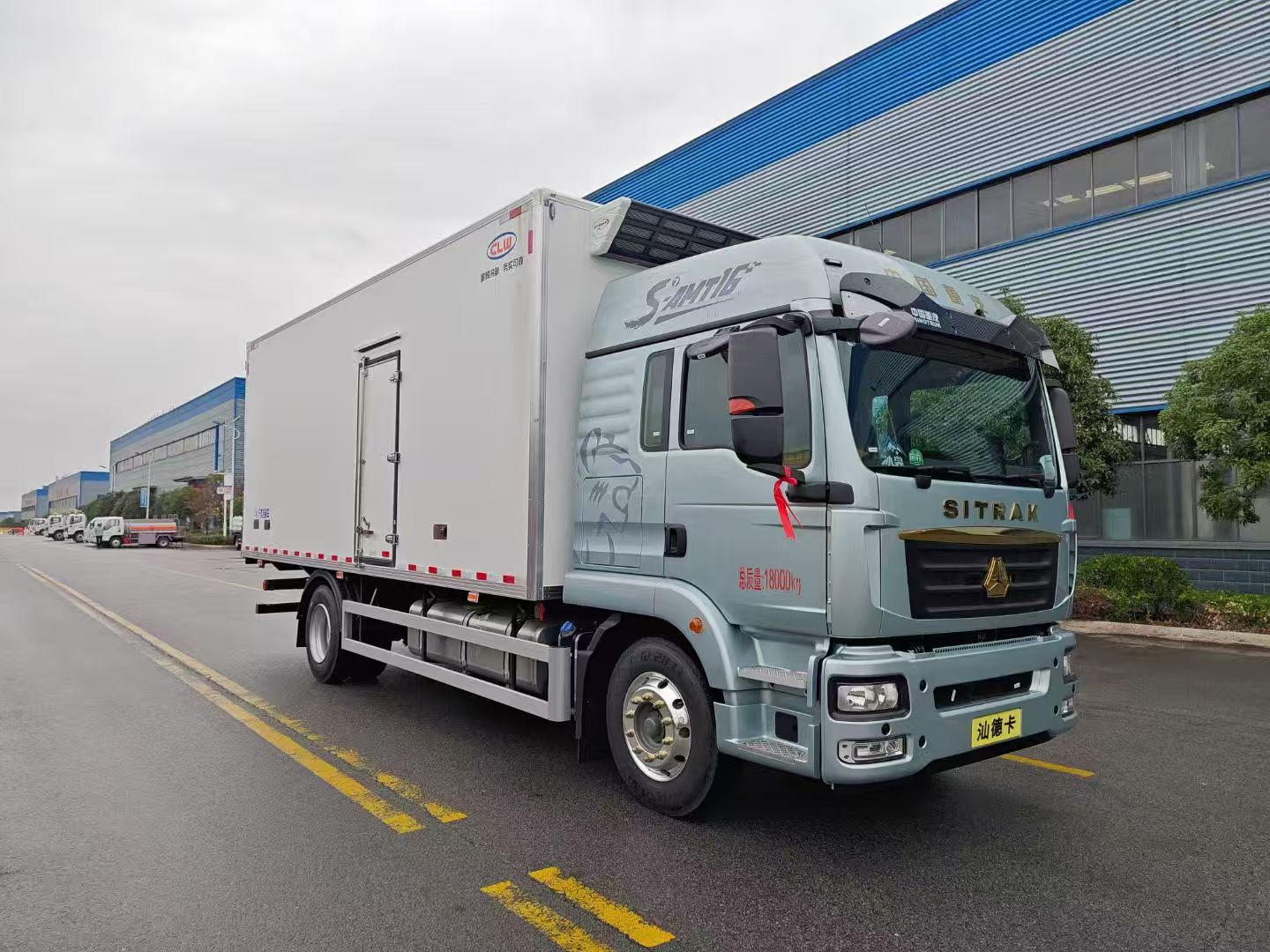 一、底盘配置:汕德卡;G5S;基础款;载货车;冷藏;G5S-T06驾驶室 豪华版;MC07H.33-61发动机;HW11710ACL变速箱;1094自调臂前轴(鼓); MCJ09BGQ自调臂单后桥(鼓);速比3.91;单层40车架(6/232);前后标准版多片簧(7/7+3);国产方向机;公路版进气系统;限速89km/h;圆柱形消声器排气系统;长效燃油粗滤器;ABS(4S/164M);高位保险杠(全金属);前铝合金车轮(国产)+后轻量化车轮;275/80R22.5轮胎(纵向花纹/18PR);600L油箱;选装非LED前照灯;四方位摄像头;终端排放监控装置;灭火器;燃油粗滤12器(手动泵)。