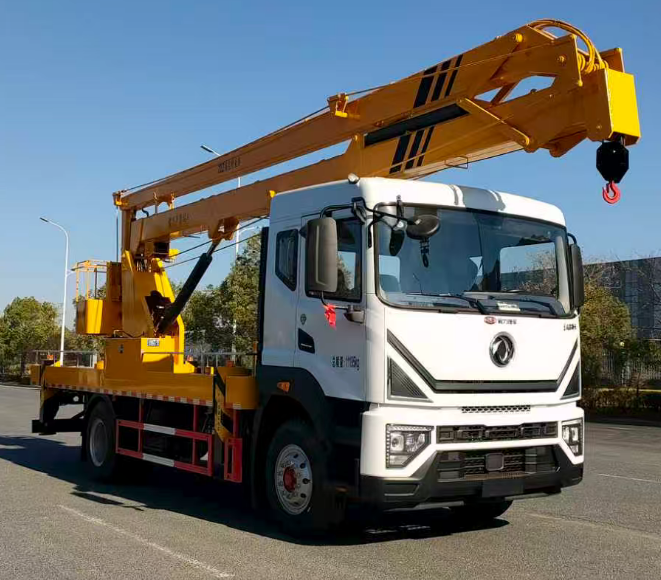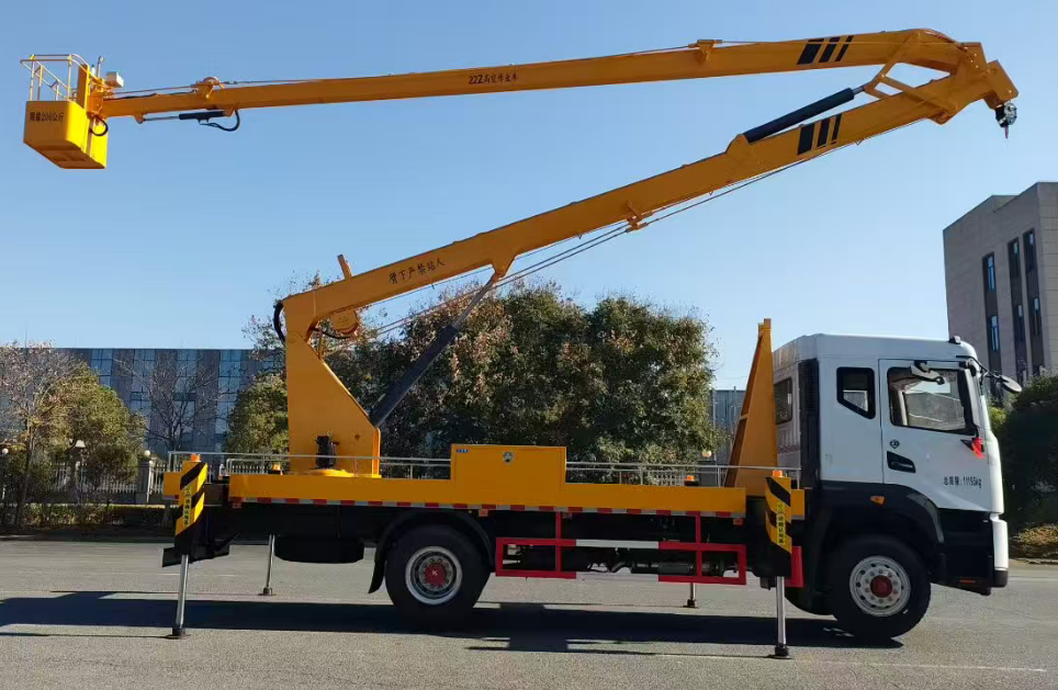 二、上装配置:整车采用 CAN 总线系统,并配备无线遥控器,360°可旋转作业平台 ,H型支腿,横向跨距更宽,稳定性更强。转台和吊篮设有启动和熄火开关,配置应急泵。作业高度22米。
