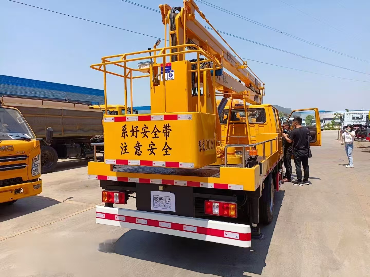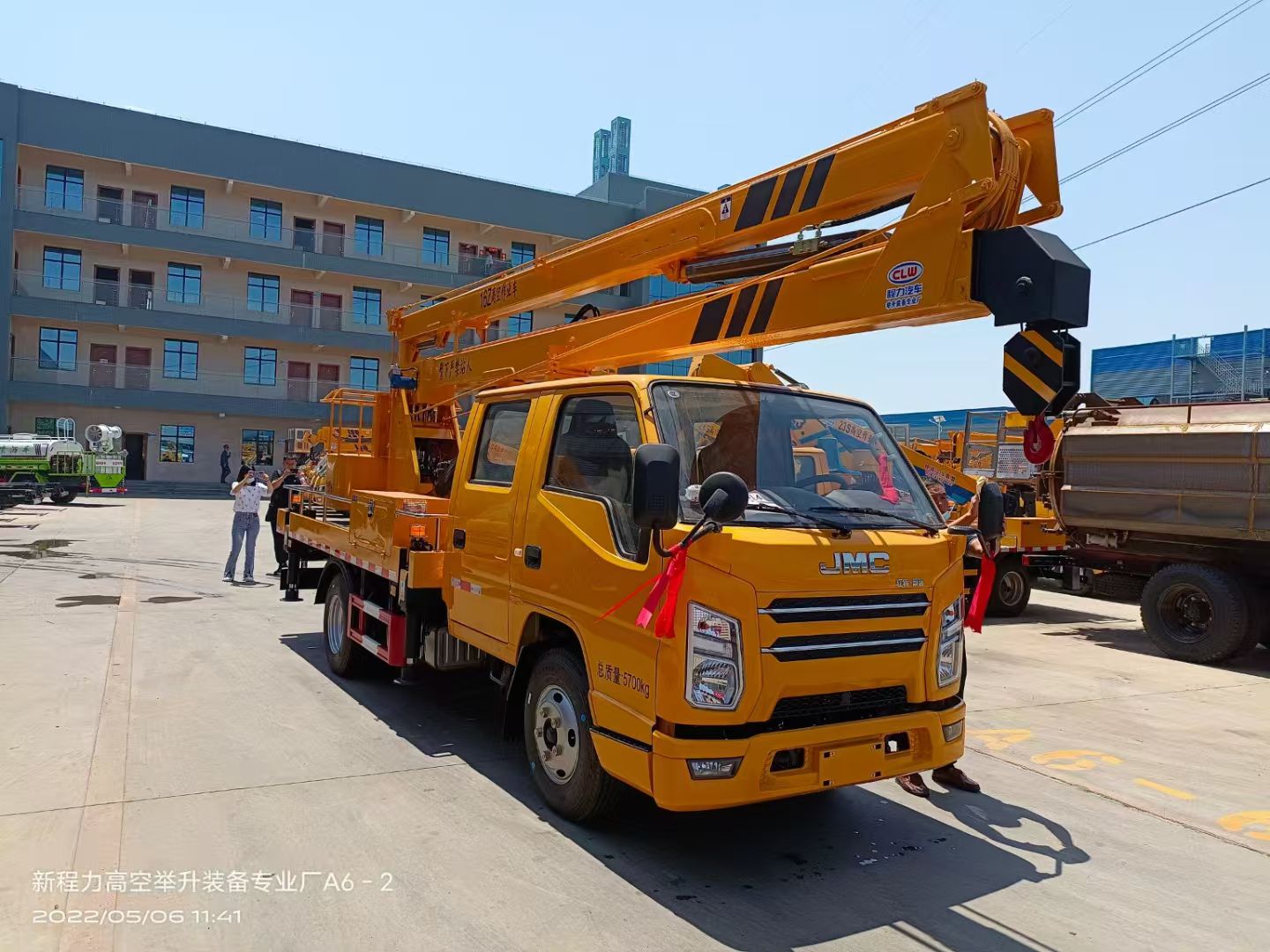 二、上装配置:整车采用 CAN 总线系统,并配备无线遥控器,360°可旋转作业平台 ,H型支腿,横向跨距更宽,稳定性更强。转台和吊篮设有启动和熄火开关,配置应急泵。作业高度16米。