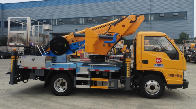 二、上装配置:整车采用 CAN 总线系统,并配备无线遥控器,360°可旋转作业平台 ,H型支腿,横向跨距更宽,稳定性更强。转台和吊篮设有启动和熄火开关,配置应急泵。作业高度28米。