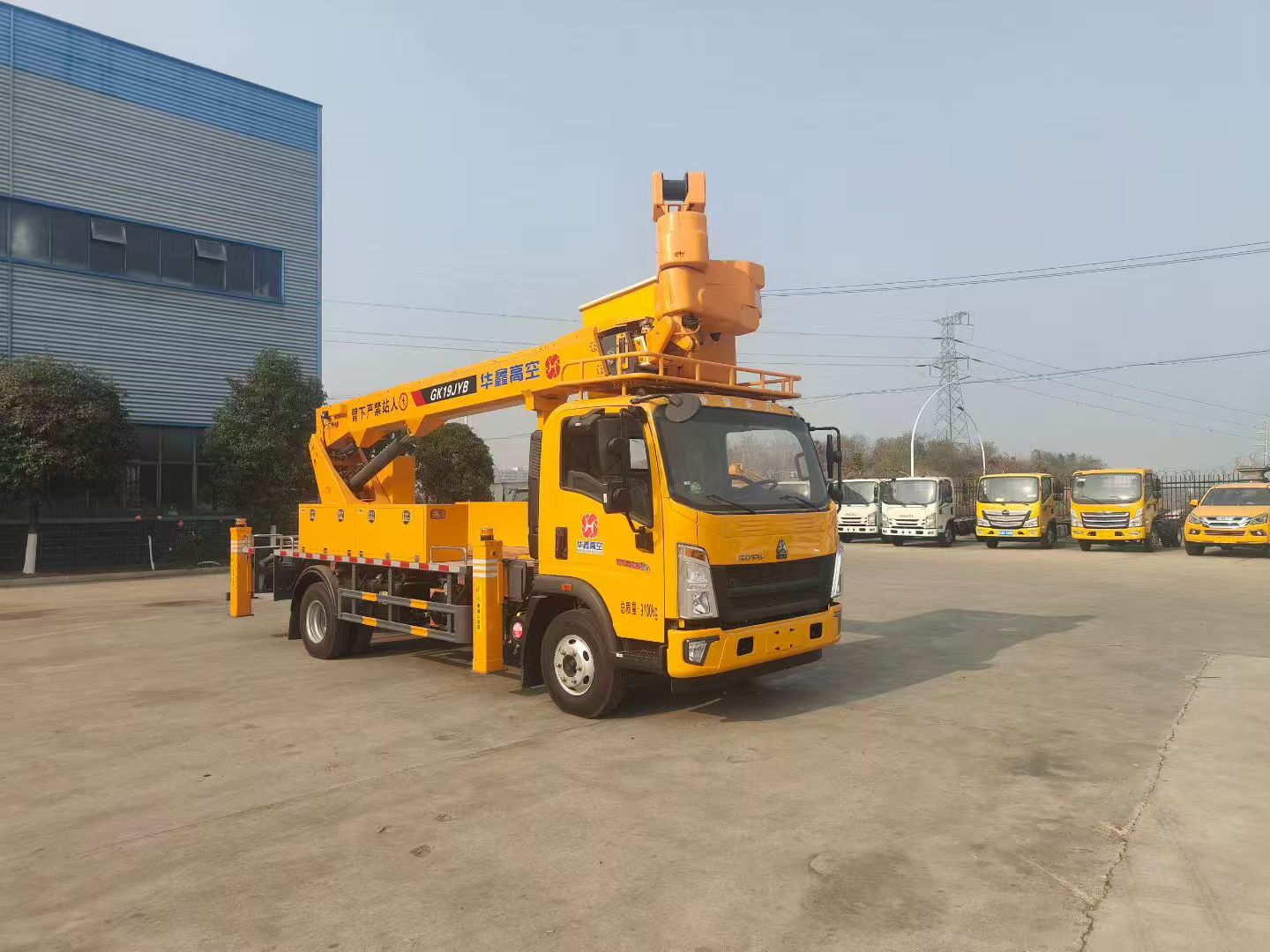 二、上装配置:3节多边型工作臂,前H后H型,单独可调,电控操作,另配有手动应急操作,绝缘等级45KV。作业高度19米。