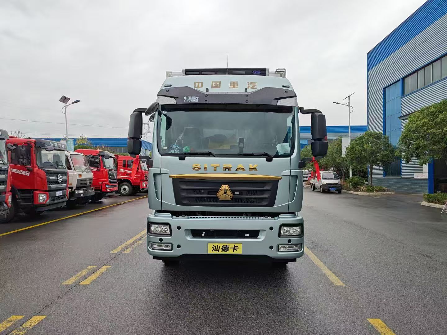 一、底盘配置:汕德卡;G5S;基础款;载货车;冷藏;G5S-T06驾驶室 豪华版;MC07H.33-61发动机;HW11710ACL变速箱;1094自调臂前轴(鼓); MCJ09BGQ自调臂单后桥(鼓);速比3.91;单层40车架(6/232);前后标准版多片簧(7/7+3);国产方向机;公路版进气系统;限速89km/h;圆柱形消声器排气系统;长效燃油粗滤器;ABS(4S/164M);高位保险杠(全金属);前铝合金车轮(国产)+后轻量化车轮;275/80R22.5轮胎(纵向花纹/18PR);600L油箱;选装非LED前照灯;四方位摄像头;终端排放监控装置;灭火器;燃油粗滤12器(手动泵)。